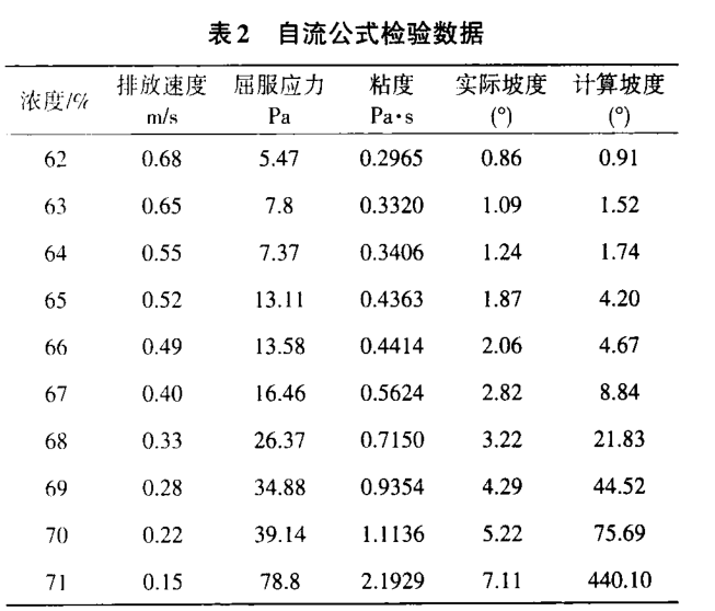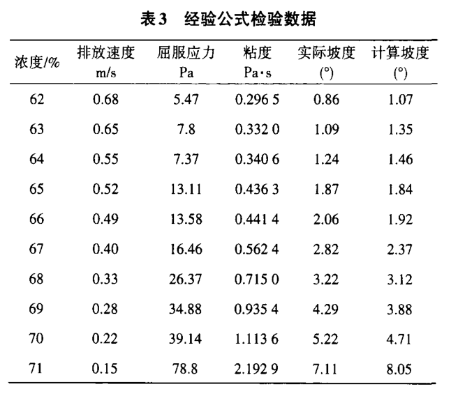 4、膏體自流坡度經(jīng)驗公式檢驗