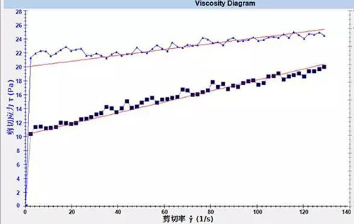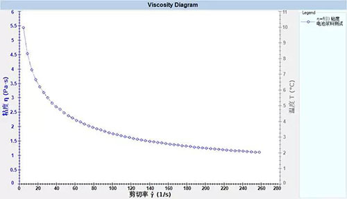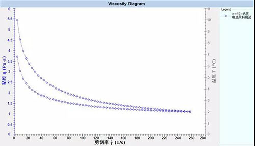 3、測試電池漿料高剪切速率下粘度,評價其涂布性能及混合生產(chǎn)時的性能;