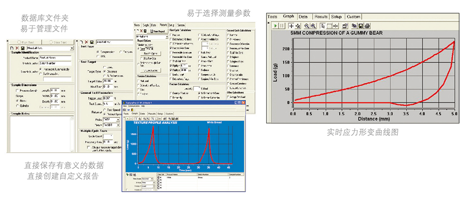 -例如彈性、咀嚼性、硬度等諸多參數(shù),可通過內(nèi)嵌的參數(shù)計算模型來進(jìn)行高級數(shù)據(jù)分析。