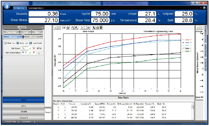 RheocalcT軟件可以用來分析數(shù)據(jù),生成多層圖形,打印數(shù)據(jù)列表,運行數(shù)學模型以及一些其他的省時省力的例行功能??衫L制并保存高達5組的比較數(shù)據(jù)另外、還包括以下特點:
