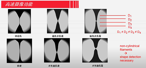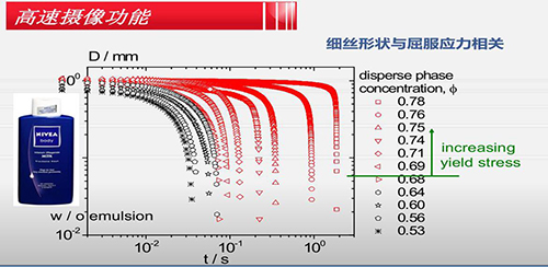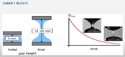 研究中低粘度流體或半固體在拉伸作用下,其細絲直徑隨時間的變化過程。