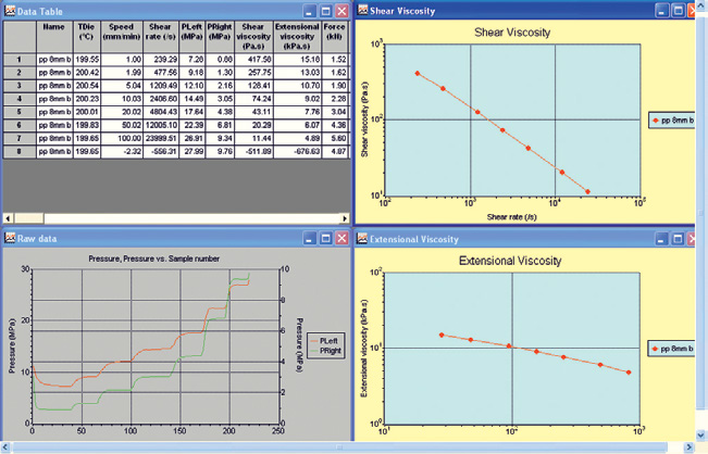 • 評(píng)估工藝流程中的擠出行為,例如注塑成型,熱熔體擠出成型等