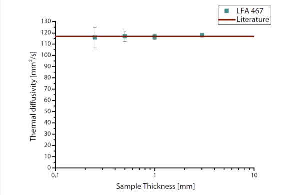 LFA 467:不論樣品的厚薄程度,測(cè)試得到的銅樣品的熱擴(kuò)散系數(shù)與理論值都十分吻合