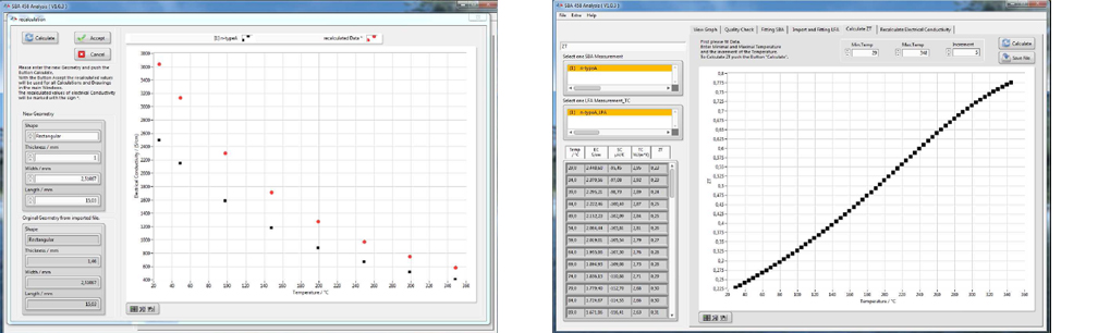 • 塞貝克系數(shù)與電導(dǎo)率曲線擬合,導(dǎo)入 LFA 的熱導(dǎo)率數(shù)據(jù),最終計算 ZT 值