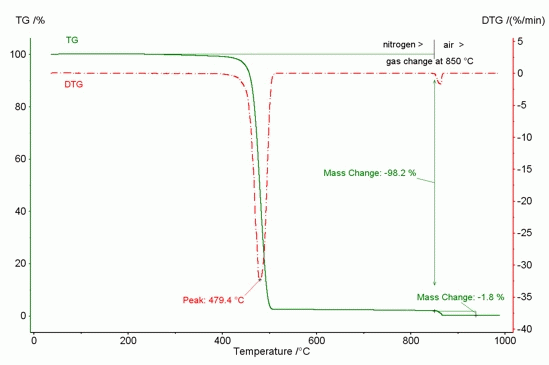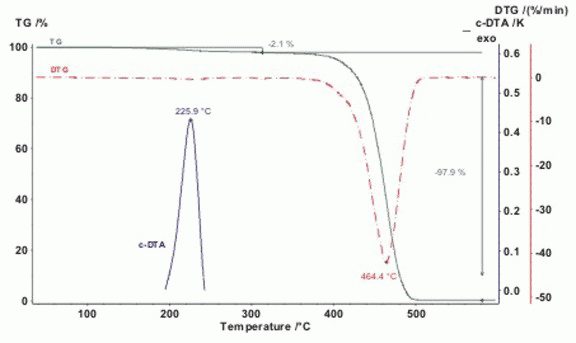 可選的 c-DTA®功能不僅適用于儀器的溫度校正,而且在熱重測量的同時提供了關(guān)于樣品熱效應(yīng)(包括帶質(zhì)量變化的揮發(fā)、分解與不帶質(zhì)量變化的熔融、玻璃化轉(zhuǎn)變等)的重要信息。