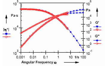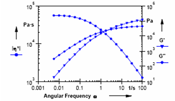3. 頻率掃描從低頻區(qū)的復(fù)合粘度|η* |作為零剪切粘度η0;