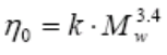 在外推測試曲線過程中,計(jì)算的粘度曲線的誤差不能忽略。因此外推只能用在已知趨勢(shì)的曲線上進(jìn)行。在零剪切粘度區(qū)域,高粘度意味著更高的平均分子量。零剪切粘度與平均分子量成正比: