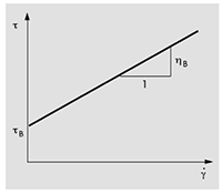 塑性流動(plastic flow)的流動曲線如圖 14-7(b)所示,曲線不經(jīng)過原點,在剪切應(yīng)力 τ軸上的某處有交點,將曲線外延至=0,在 τ 軸上某一點可以屈服值(yield value)。當剪切應(yīng)力達不到屈服值以上時,液體在剪切應(yīng)力作用下不發(fā)生流動,而表現(xiàn)為彈性變形。當剪切應(yīng)力增加至屈服值時,液體開始流動,剪切速率和剪切應(yīng)力 τ 呈直線關(guān)系。液體的這種變形稱為塑性流動。引起液體流動的最低剪切應(yīng)力為屈服值 τ0。
