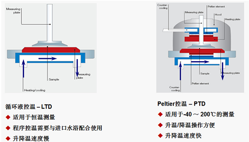 控溫系統(tǒng)是旋轉(zhuǎn)流變儀中最重要的部件之一,必須針對樣品測試所需要的溫度范圍選擇合適的控溫系統(tǒng),既要考慮溫度范圍,也要考慮所需的測試夾具種類、升降溫速度、樣品特性(如是否易揮發(fā)等),MCR 流變儀中提供了多種多樣的控溫系統(tǒng),從原理上主要有液體循環(huán)控