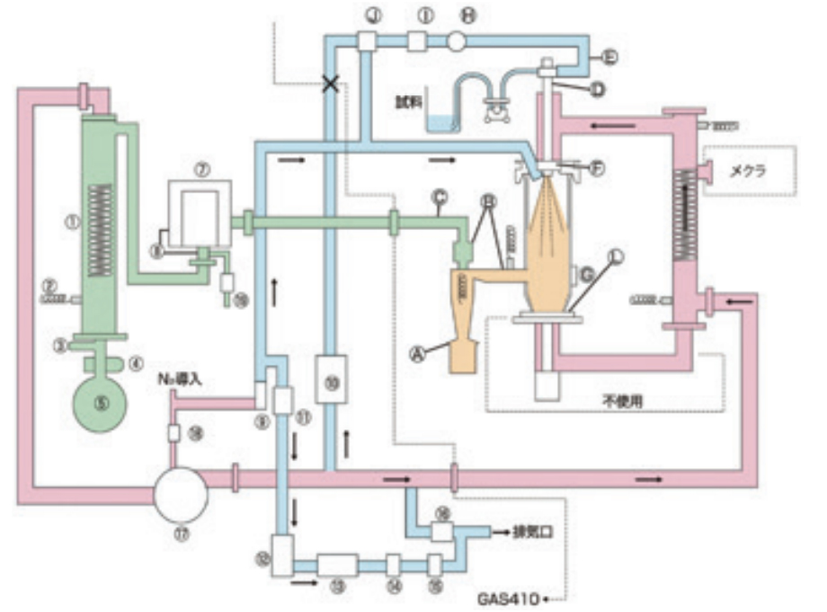 氧濃度計(jì)、可燃性氣體警報(bào)器、過電流漏電保護(hù)開關(guān)、N2強(qiáng)制導(dǎo)入(拔噴嘴時(shí)) |