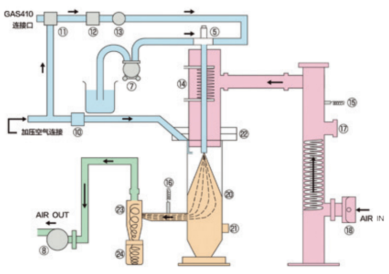 使用噴霧用空壓機(另售),但連接溶劑回收裝置GAS410(另售)時使 用GAS410內(nèi)置空壓機 |