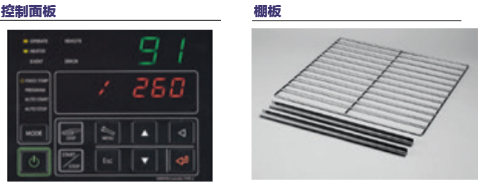棚板(1件棚板包含2件棚受)、自動風(fēng)門、N2導(dǎo)入裝置、記錄儀、組合警示燈(待機(jī)/運(yùn)行/故障)、溫度輸出端子(4~20mA)、外部警報(bào)輸出 端子、時(shí)間到達(dá)輸出端子 |