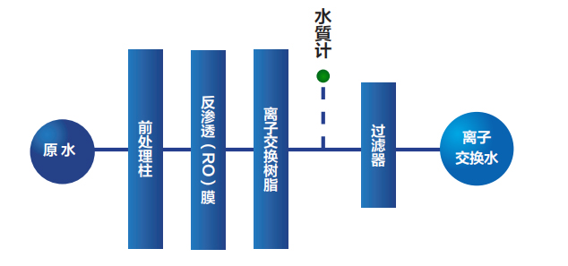 RO膜→離子交換→過濾 |