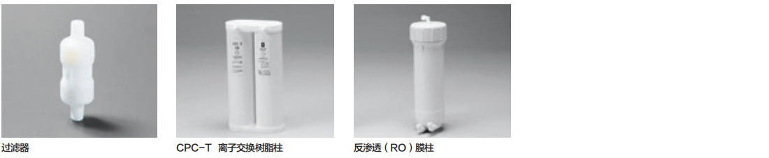 原水供水管、前處理柱、RO膜(柱式)、離子交換柱CPC-T、膜過濾器、 排水管(Φ10×3000mm)、電源線、密封帶 |