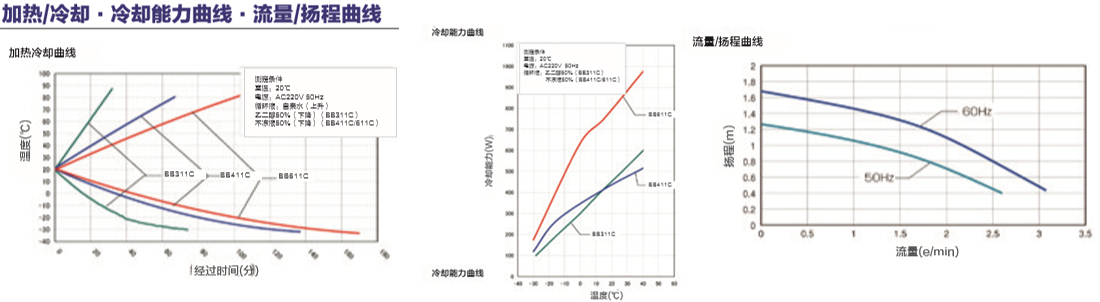 | 冷卻能力 | 約420W(361Kcal/h),at液溫15℃ | 約510W(439Kcal/h),at液溫15℃ | 約730W(628Kcal/h),at液溫15℃ | ||