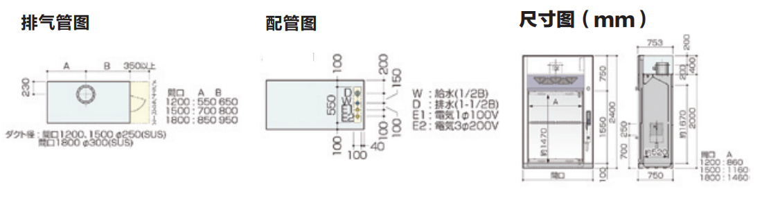| 安全機(jī)構(gòu) | 門掉下防止擋塊、排氣延遲定時(shí)器、風(fēng)量監(jiān)視 |