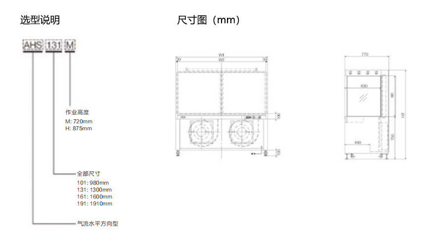 | 外形尺寸(mm) | W980×D770 | W1300×D770 | W1600×D770 | W1910×D770 | ||||||